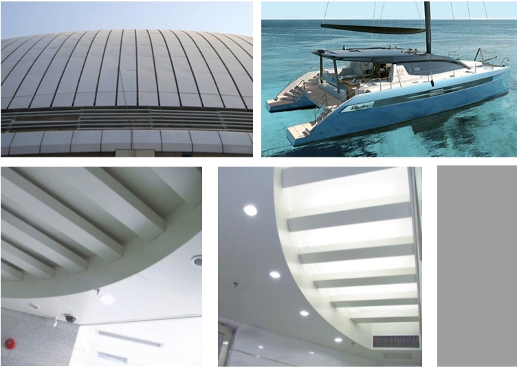 Décoration extérieure de mur-rideau, décoration murale intérieure, rénovation de bâtiment ancien.Navire, train à grande vitesse, décoration intérieure d'avion.Décoration de meubles modernes.